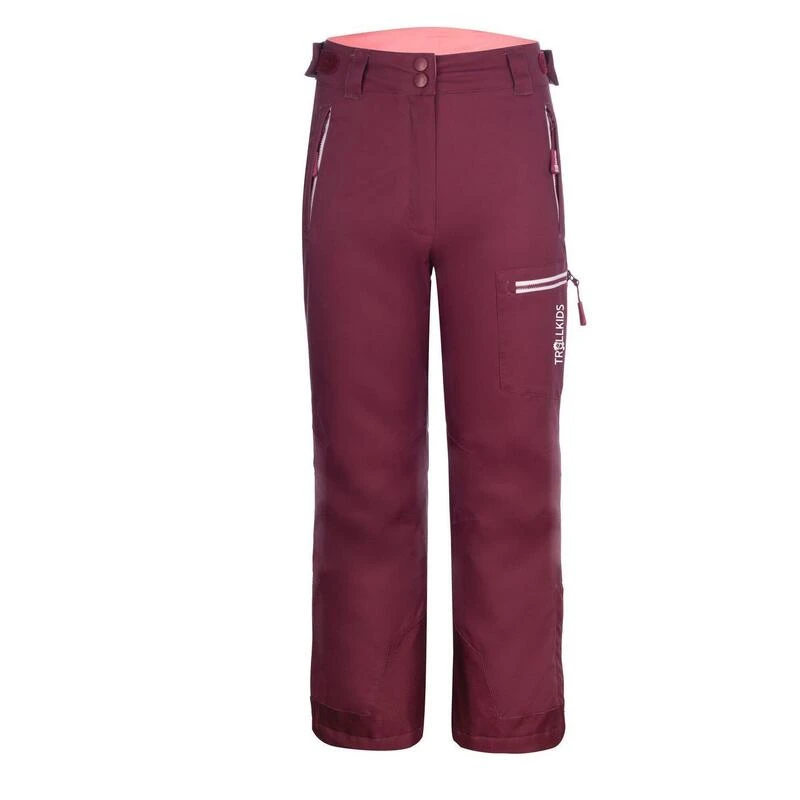Pantalon pour la neige imperméable et respirant, destiné aux enfants, avec de nombreuses poches, des genoux préformés, des guêtres intégrées et le bas de jambes réglable en largeur.